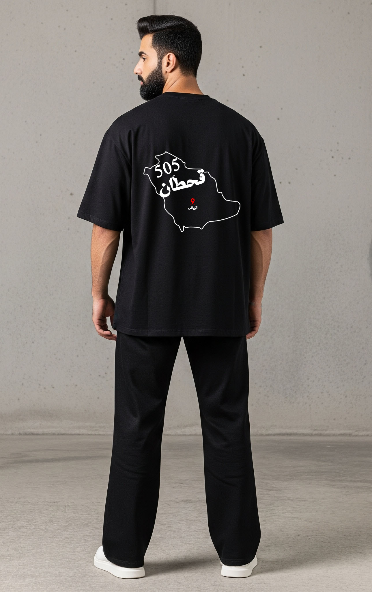 تيشيرت اليوم الوطني اسود من متجر برنت سيرفيس، أوفر سايز خريطة اسم القبيلة بتصميم واسع ومريح يعكس هوية مميزة ويجمع بين الراحة والأناقة اليومية.