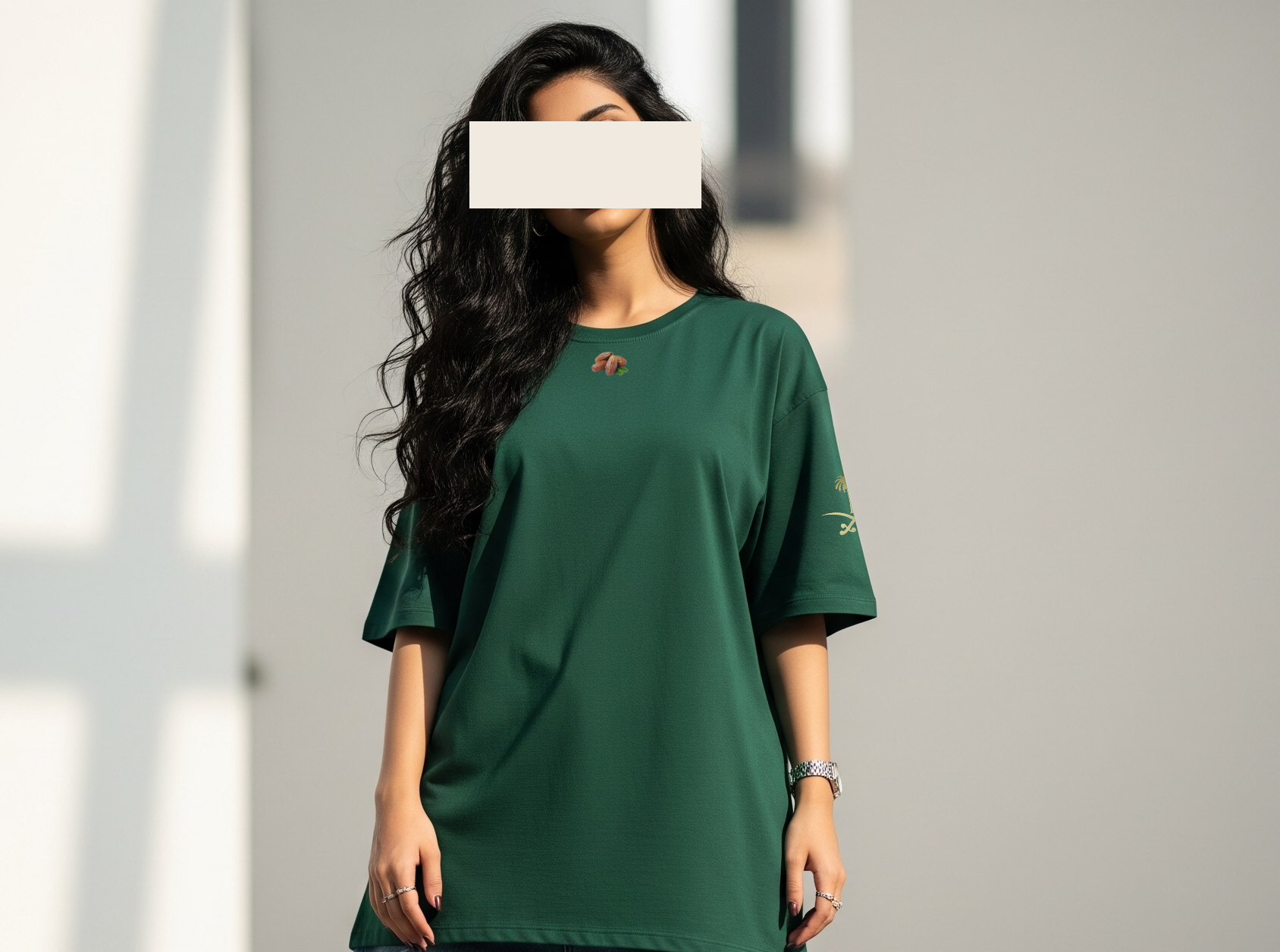 - اللون الزيتي المميز مع تفاصيل الطباعة الأنيقة يعكس مزيجًا من الأصالة والحداثة، ليمنحك إطلالة مختلفة تعبر عن الانتماء بروح متجددة.