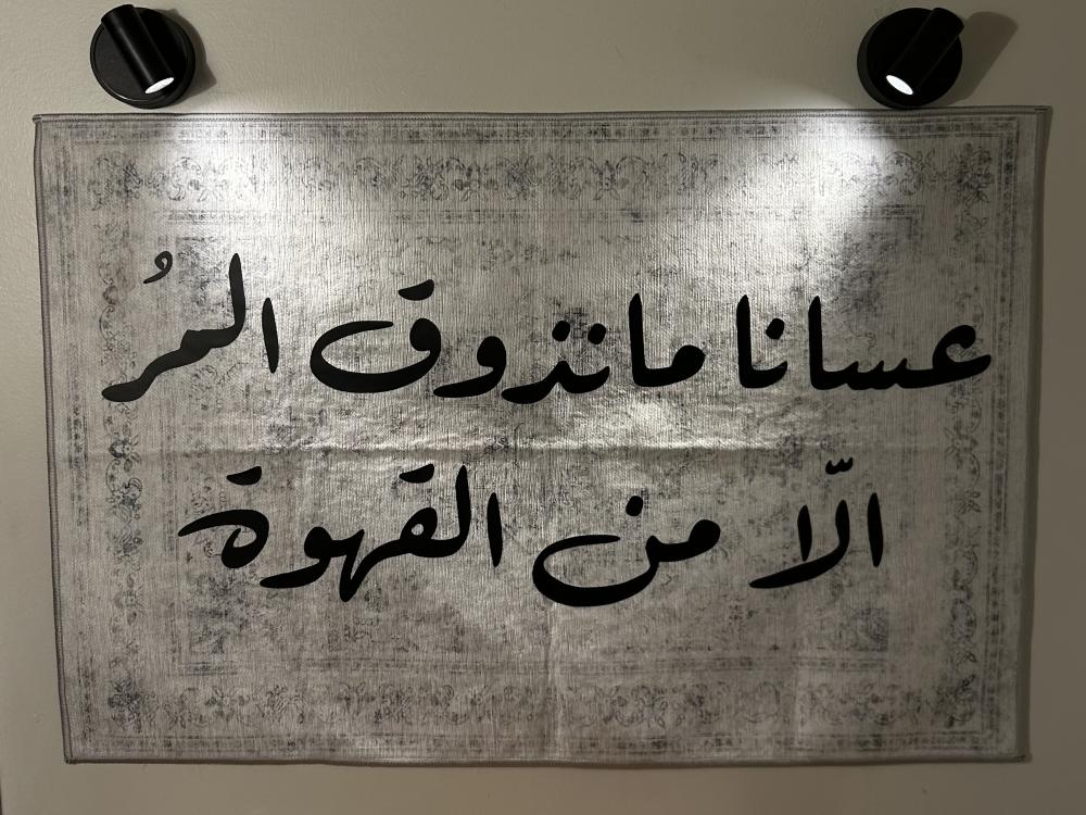 - أضف لمسة خاصة لركن القهوة مع سجاد حائط مودرن "عسانا مانذوق المر إلا من القهوة"، تصميم أنيق ومعبر يمنح مساحتك دفئًا وجمالًا ويجعل الأجواء أكثر راحة وتميزًا.